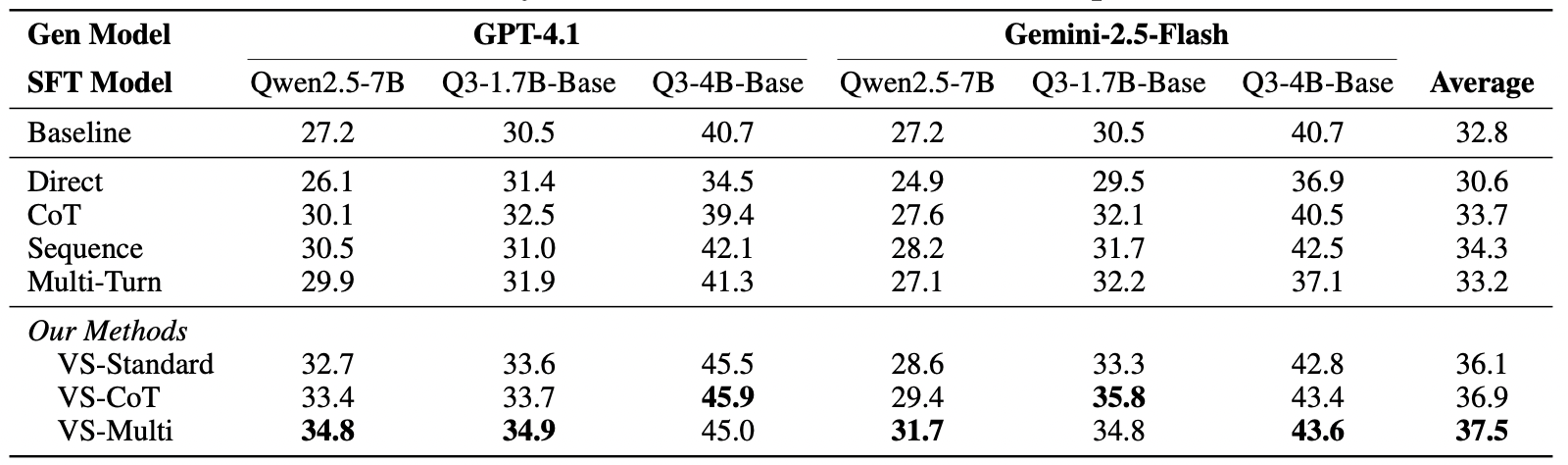 - 結果顯示,相比 Baseline (30.6%),使用 VS-Multi 生成的數據微調後,準確率提升至 37.5%。這證明了 VS 生成的數據具備高質量與高覆蓋率,對於 Data Synthesis 領域極具價值。